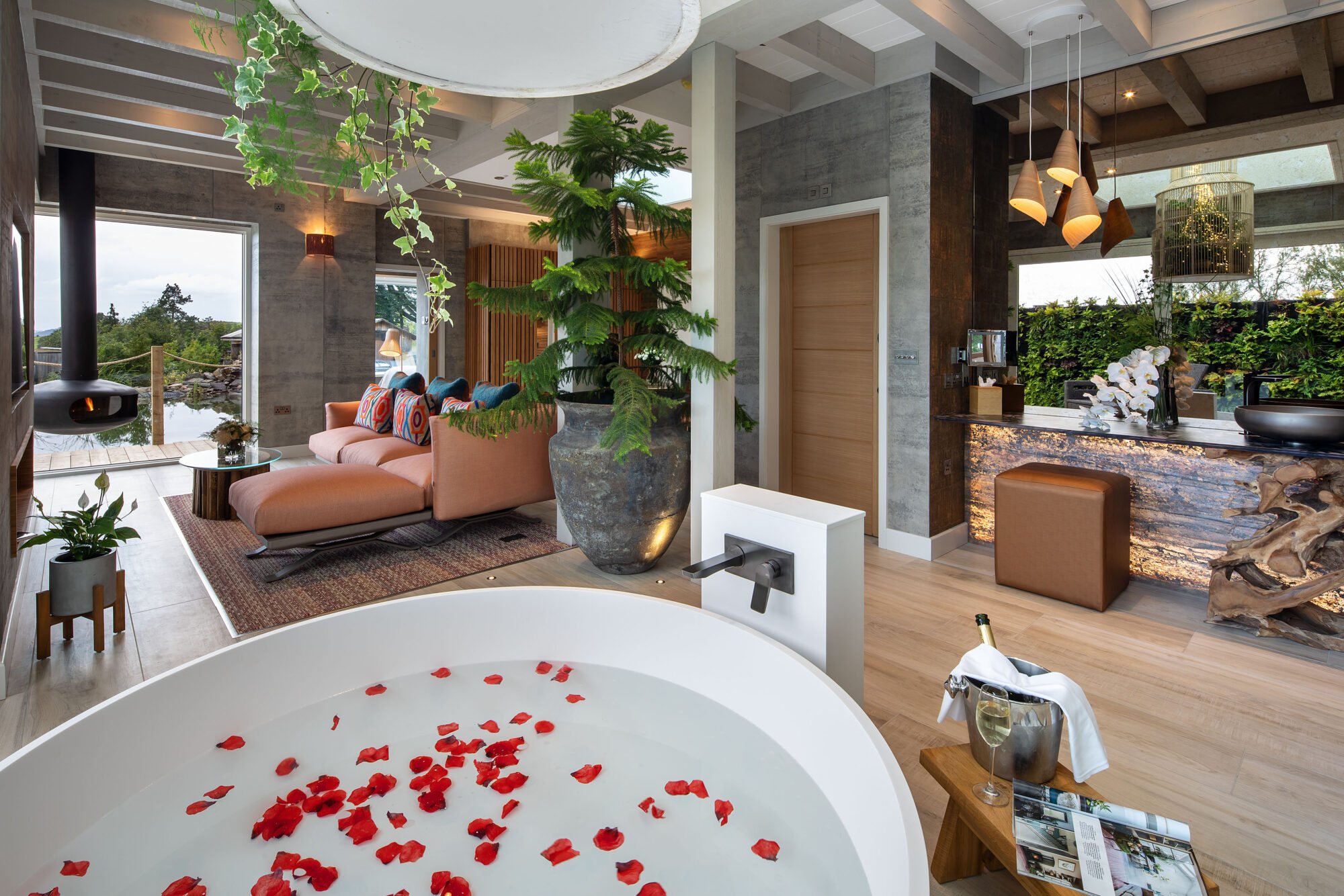 The Jetty Spa at the Gilpin Lake House, is about as romantic as you can get! The Swedish style treatment room hovers three meters into the tree canopy with its floor to ceiling windows overlooking a stunning private lake.